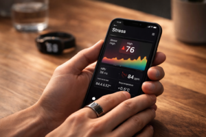 Smart rings kijken niet direct naar stress, maar naar signalen zoals HRV, rusthartslag, slaap en huidtemperatuur.